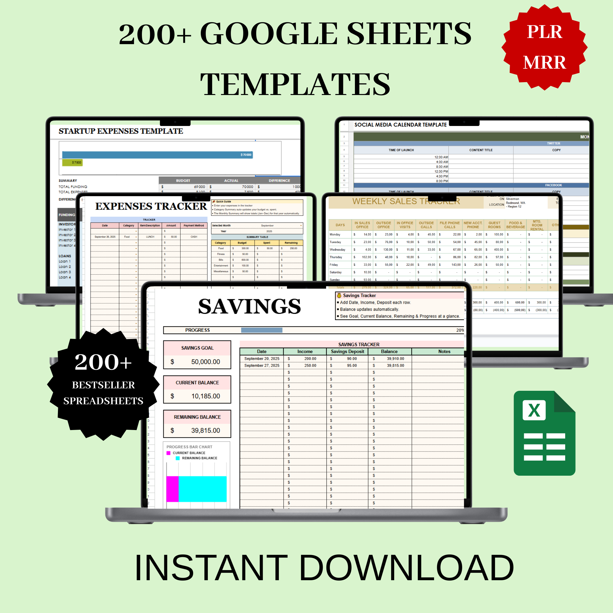 200+ Google Sheets & Excel Templates Bundle – Finance, Budget, Sales & Project Trackers with PLR + MRR Resell Rights | Business Spreadsheet Toolkit