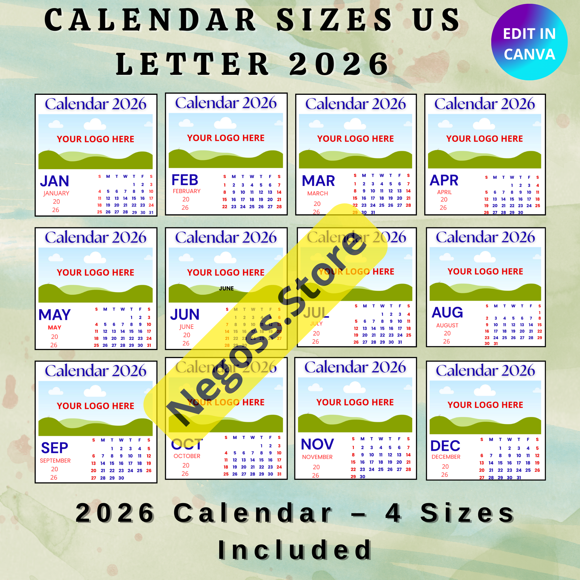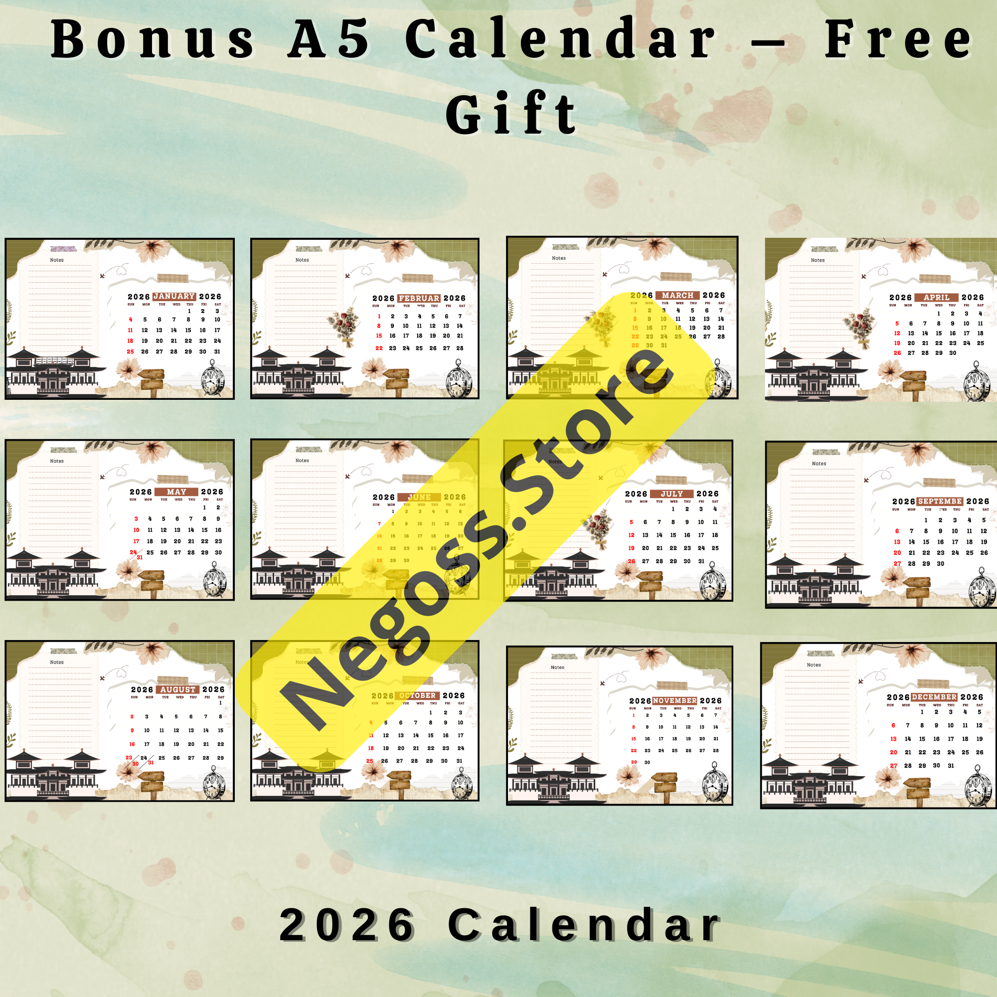 2026 Printable Calendar Bundle – Editable Canva Templates (A4, A3, US Letter, Square + A5 Bonus) with PLR + MRR Resell Rights