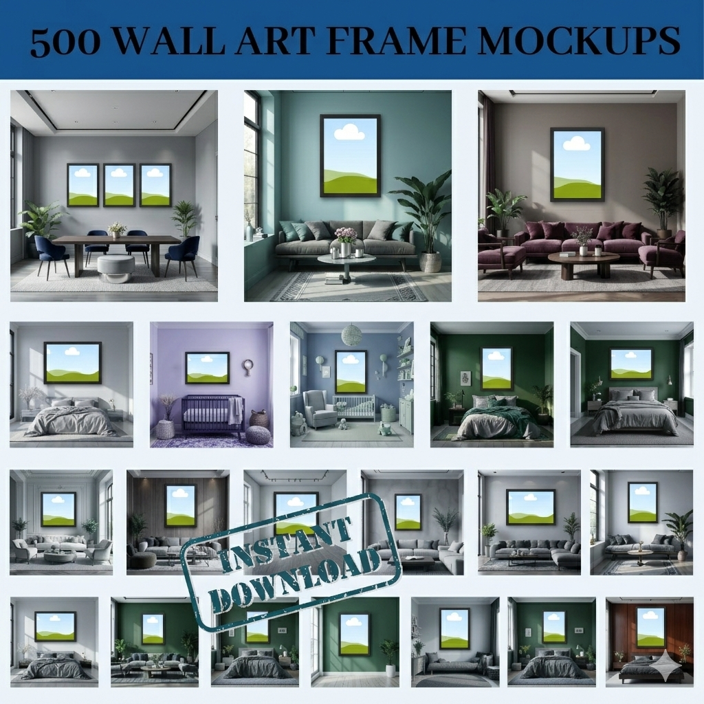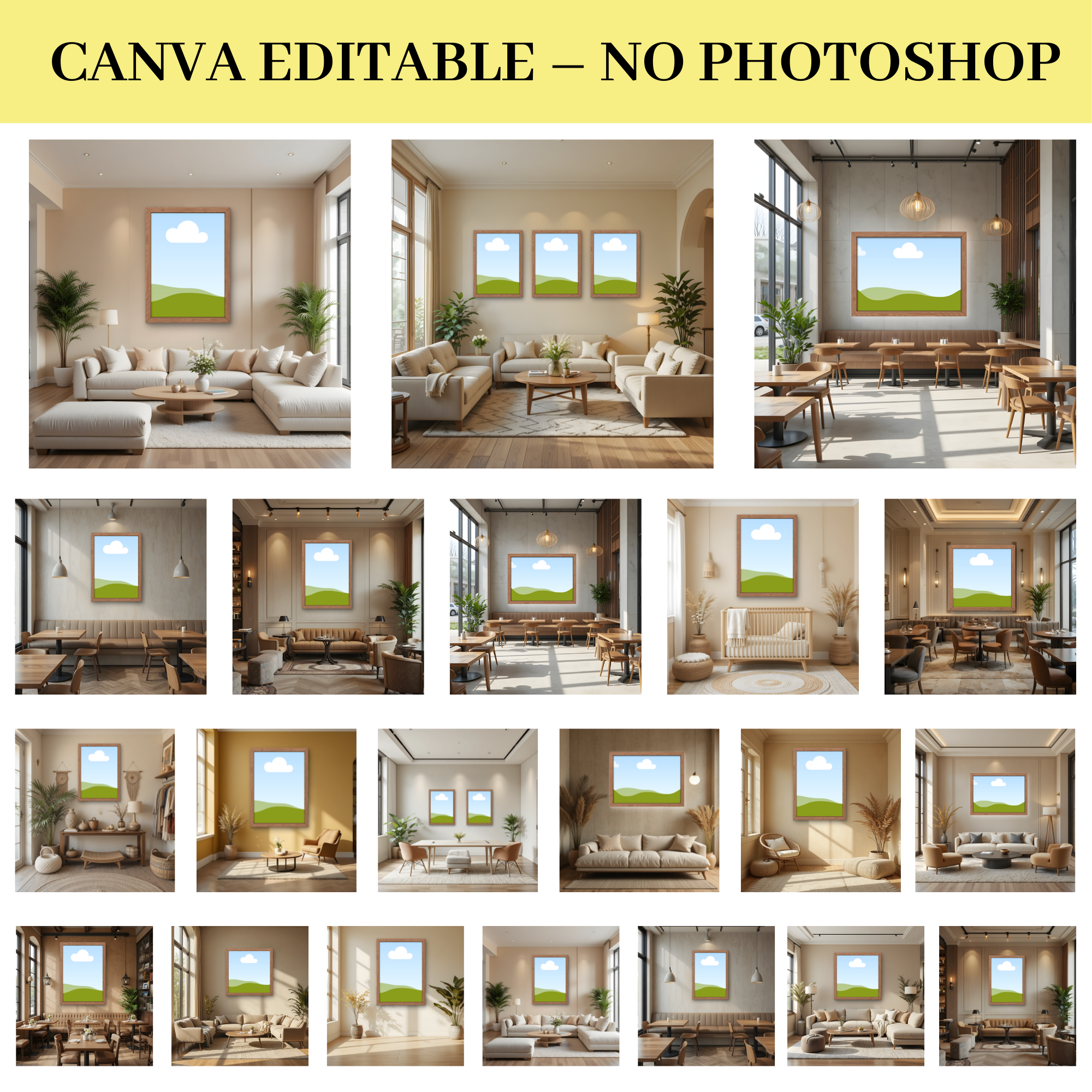 500 Canva Wall Art Frame Mockups Bundle – Editable Interior Mockups with PLR + MRR Resell Rights (Commercial Use Included)